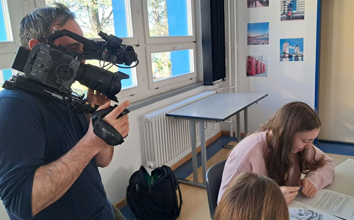 Kurz nach dem Mittagessen gehörte ein Teil der Deutschstunde in der Klasse 9a den Dreharbeiten für eine TV-Dokumentation. Mittendrin: Ruderin Fritzie Tolk. Die Neuntklässlerin ist eines der zwölf Sporttalente, welche im Rahmen der Doku-Reihe "Sport-Ass 2025" im MDR vorgestellt werden.