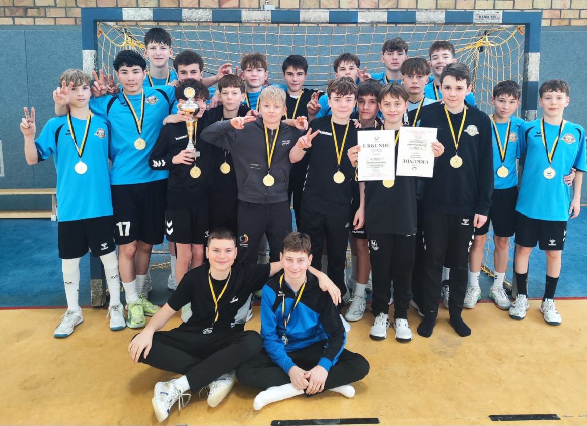 So sehen Sieger aus! Beide Jungsteams des SGM haben das JtfO - Landesfinale im Hallenhandball souverän gewonnen. Sowohl die U16 als auch die U14 waren in der Mehrzweckhalle in drei Begegnungen gefordert. Mit den Siegen haben sich beide Schulmannschaften für das Bundesfinale in Berlin qualifiziert. Das blieb der U14-Mädchenmannschaft am gestrigen Dienstag verwehrt. Das Team belegte hinter den Sportschulen Halle Platz zwei.